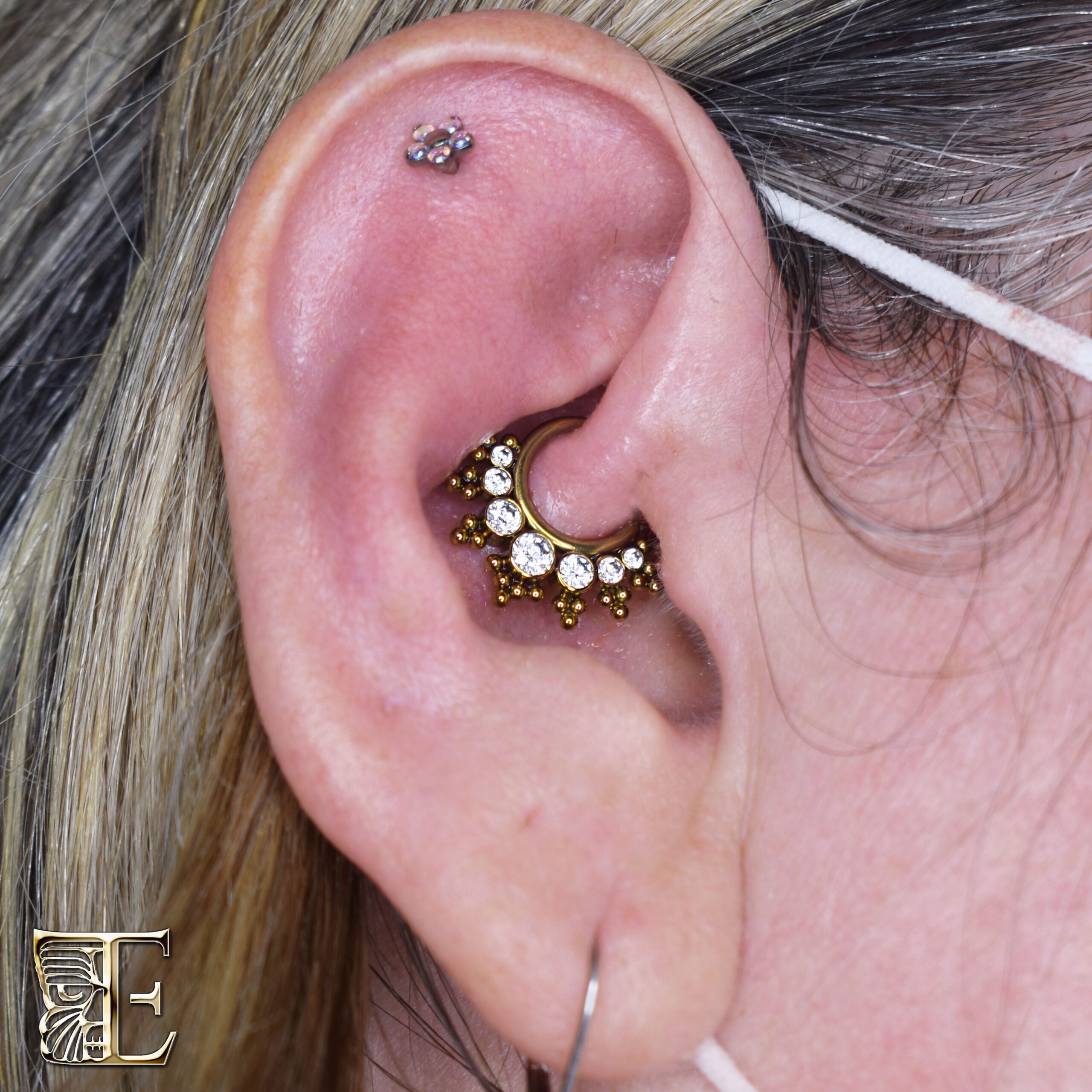 The daith piercing is one of the most striking and unique inner-ear piercings. Placed through the