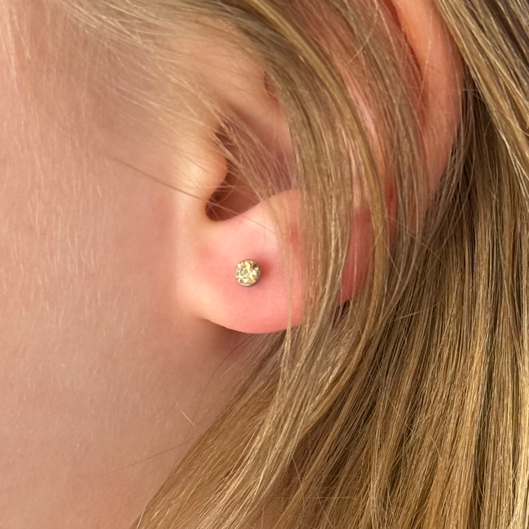 all children’s ear piercings are done with implant-grade titanium or solid gold, sterile technique, and